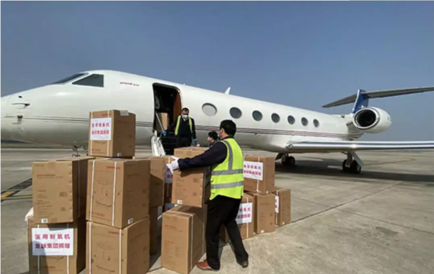 ? ?為將捐贈物資盡快送達,江蘇企業(yè)甚至還動用起私人飛機。2月5日,《拼了!動用私人飛機!江蘇防疫物資生產(chǎn)企業(yè)“火力全開”》在網(wǎng)上熱傳。4日晚,載有100臺醫(yī)用制氧機、10臺醫(yī)用呼吸機的魚躍醫(yī)療集團專機從南京飛抵武漢,為多家武漢醫(yī)院破解燃眉之急……