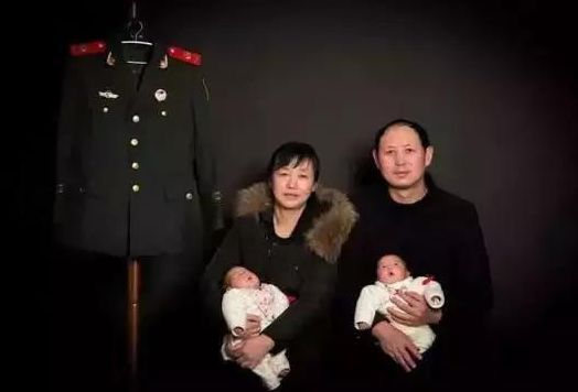和他們新出生的龍鳳胎拍攝了一張全家福,